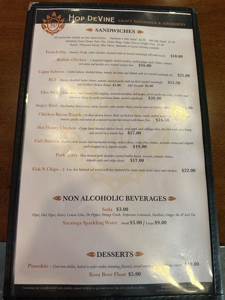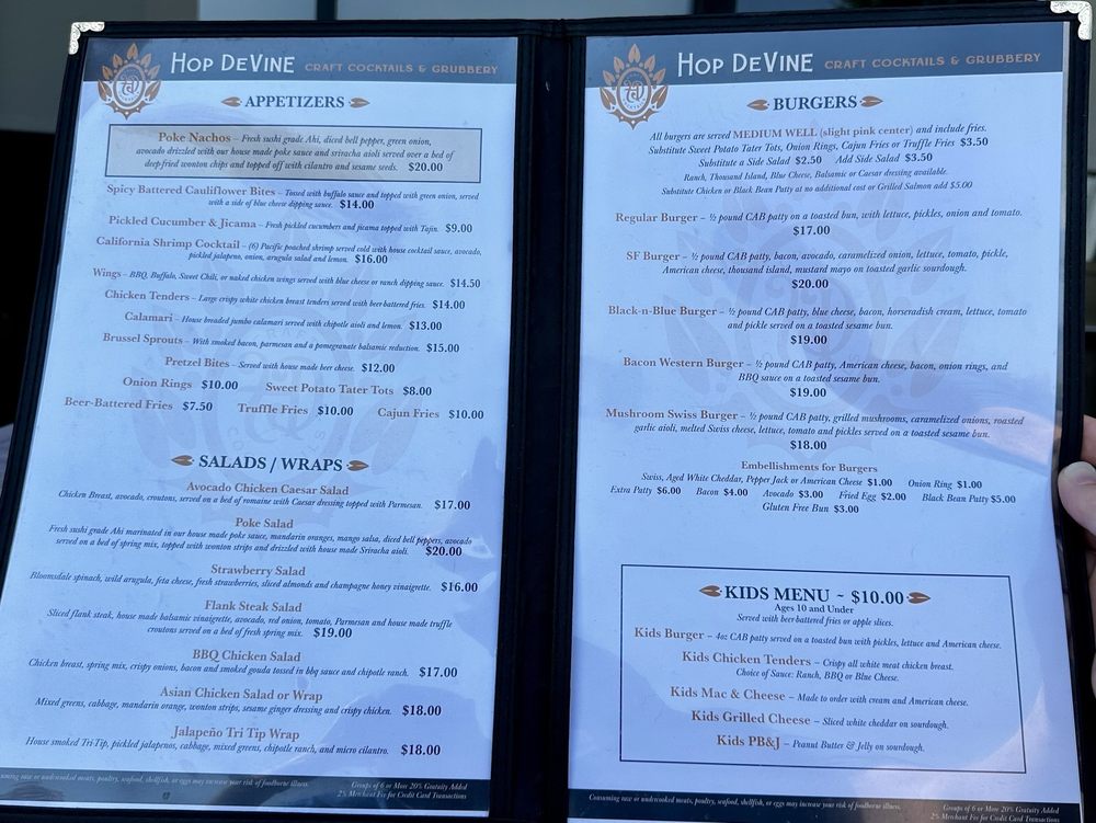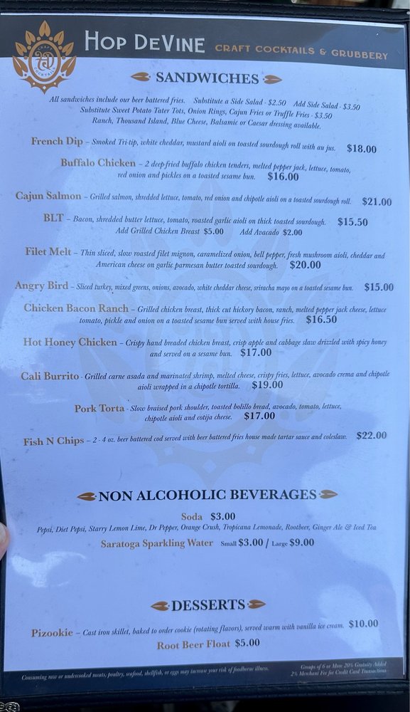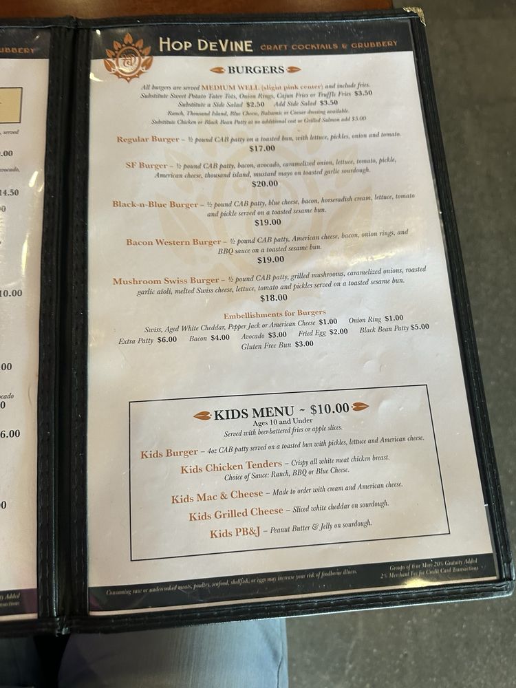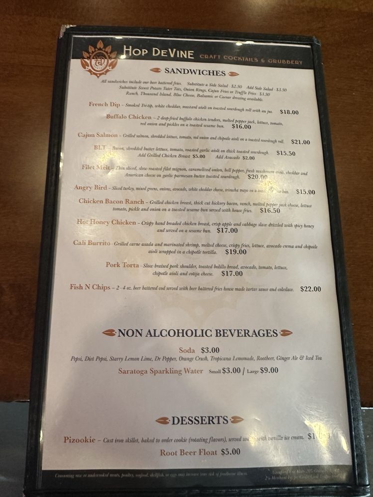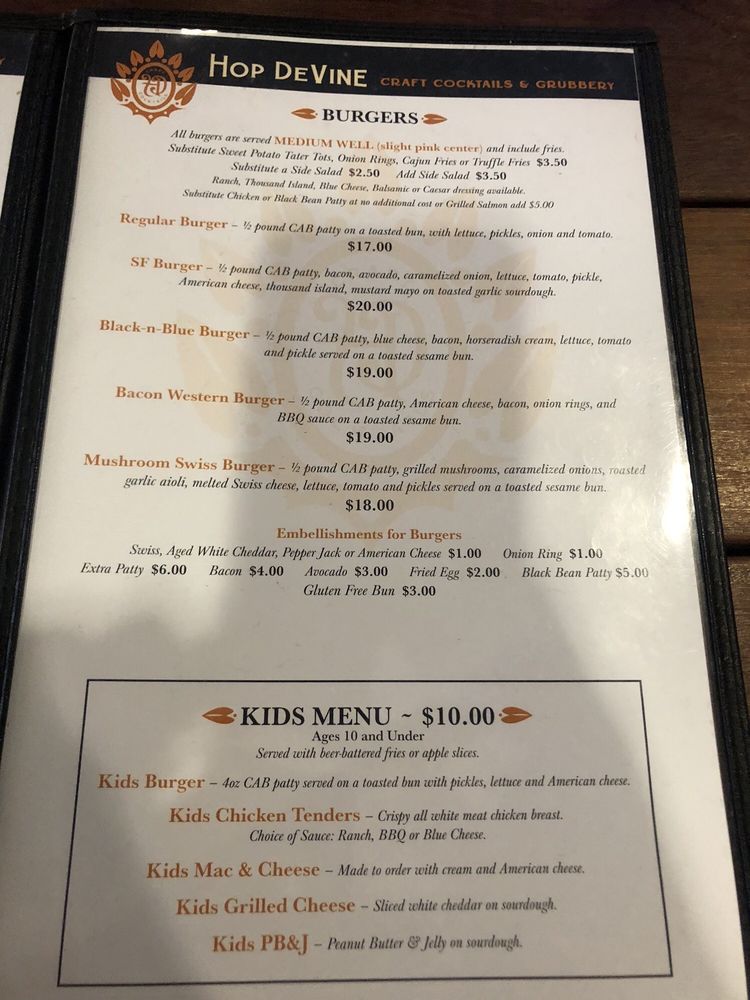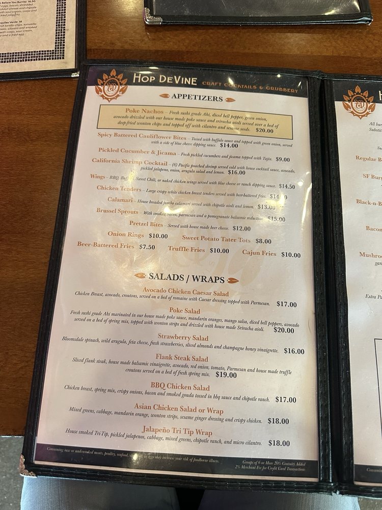 Introducing Hop DeVine, a vibrant restaurant located in Livermore, CA. This casual spot offers a diverse menu with options for pescatarians, vegans, and vegetarians. The extensive list of utilities includes delivery, outdoor seating, and free Wi-Fi. Customers praise the prompt service, spacious seating, and delicious food. Highlights from the menu include the mouthwatering Poke Salad with fresh ahi tuna and the SF Burger with certified Angus beef and avocado. The welcoming atmosphere, perfect for gatherings, makes Hop DeVine a great choice for lunch or dinner. Their plastic-free packaging and gender-neutral restrooms show a commitment to sustainability and inclusivity. Don't miss out on the experience at Hop DeVine for a delightful dining experience.